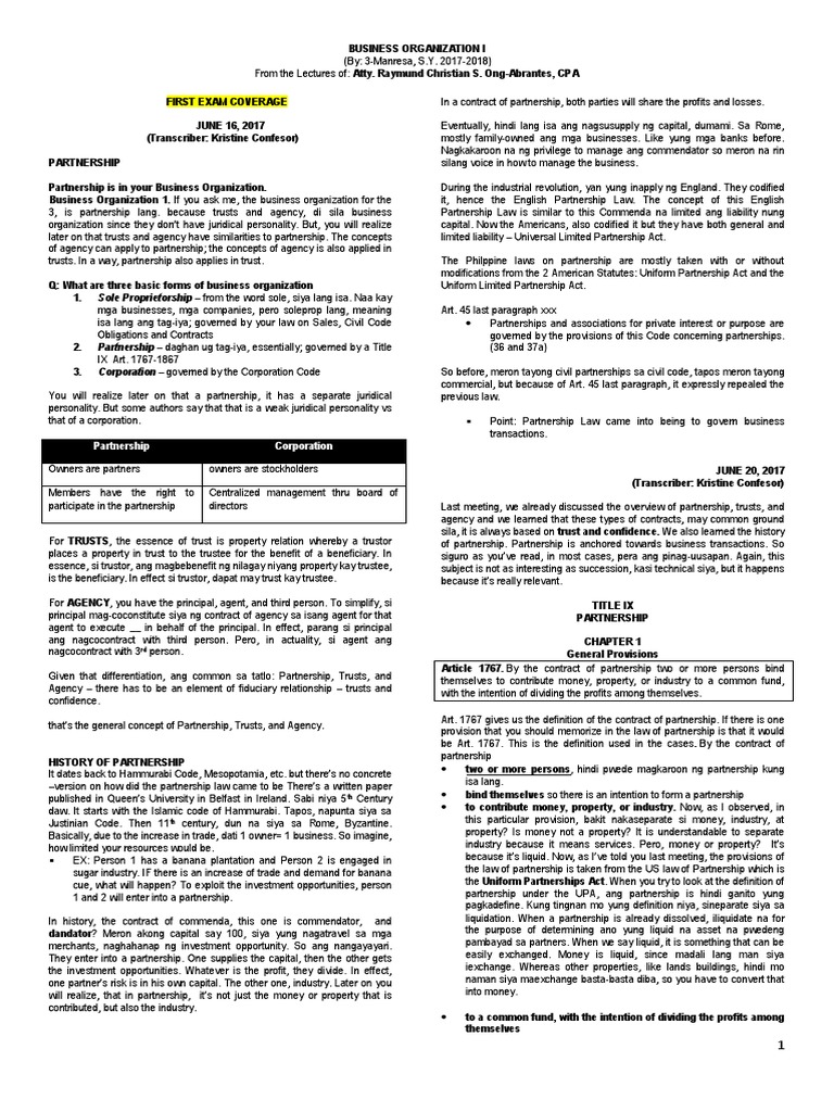 Bus Org Class Tsn Partnership Trust Law