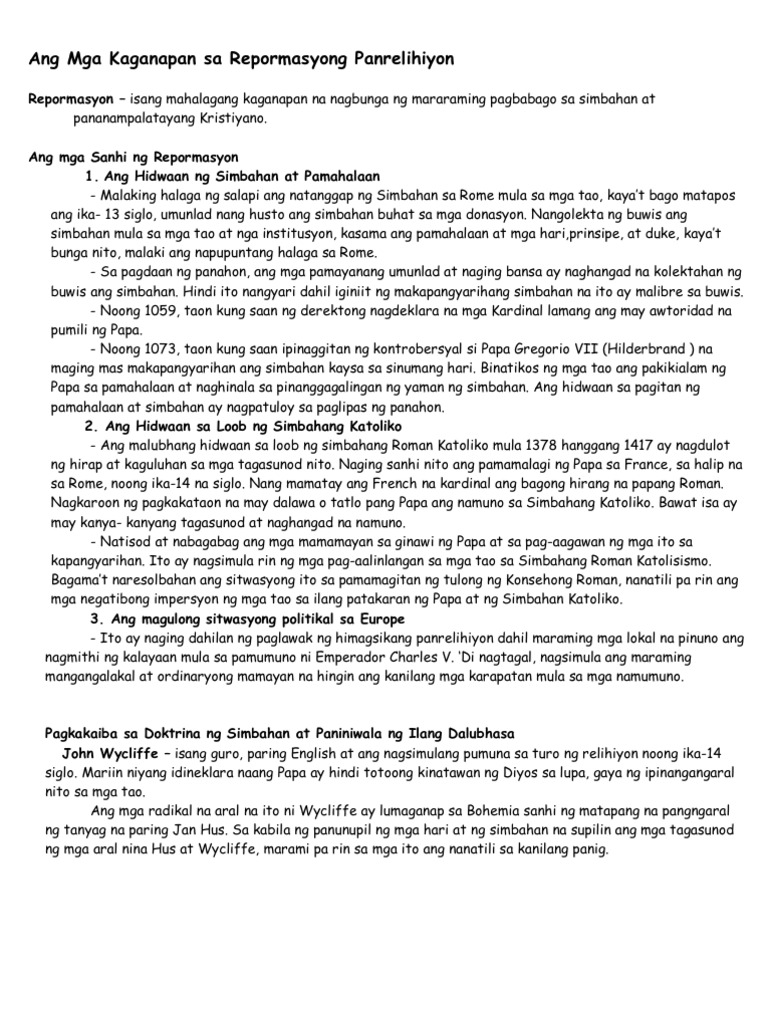 Ang Mga Kaganapan Sa Repormasyong Panrelihiyon