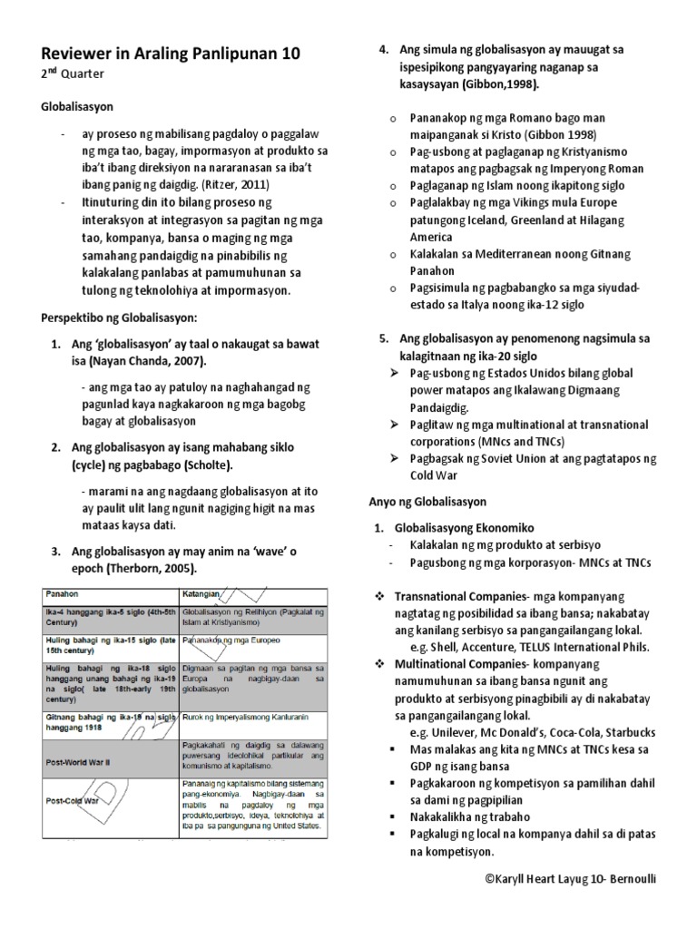 Araling Panlipunan 10 2nd Quarter Reviewer